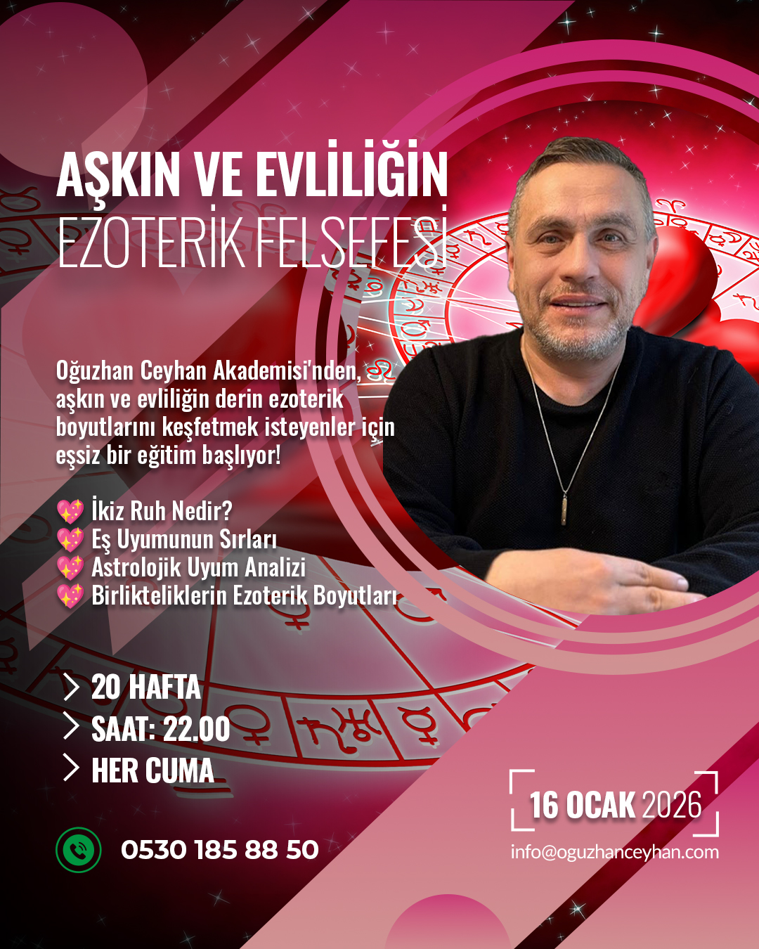 📣 Duayen Oğuzhan Ceyhan’dan Yeniden: Aşkın ve Evliliğin Ezoterik Felsefesi ❤️ Oğuzhan Ceyhan Akademisi’nden, aşkın ve evliliğin derin ezoterik boyutlarını keşfetmek isteyenler için eşsiz bir eğitim başlıyor! ✨ Başlıca